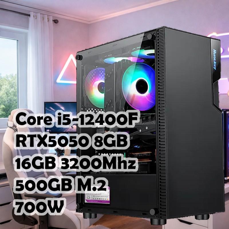 Игровой ПК начального уровня Intel Core i5-12400F, RTX 5050 8GB, 16GB DDR4, 500GB SSD.
