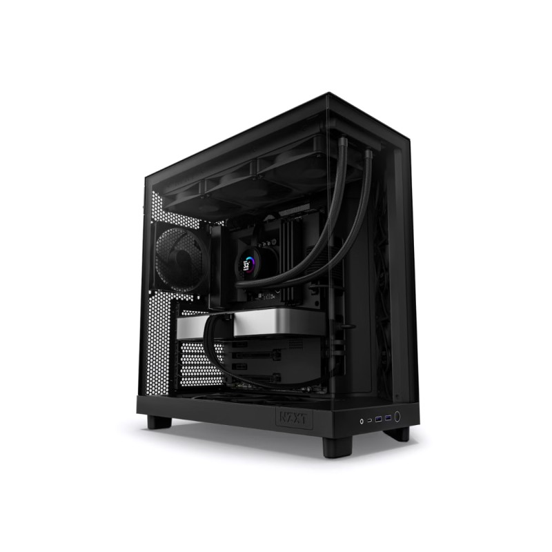 Испытайте максимальную производительность в инновационном компактном двухкамерном корпусе. Приоритет отдается охлаждению графического процессора, панорамное стекло H6 Flow демонстрирует интерьер, освобождая пространство для улучшения воздушного потока.