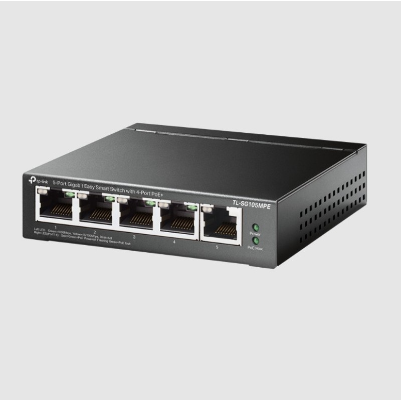 TL-SG105MPE оснащен 4 портами с поддержкой стандартов PoE+ 802.3af/at, обеспечивающими до 30 Вт на порт. Общий бюджет PoE составляет 120 Вт, что является рекордным показателем для 4-портового коммутатора такого форм-фактора. Этого достаточно для одновременного питания:
