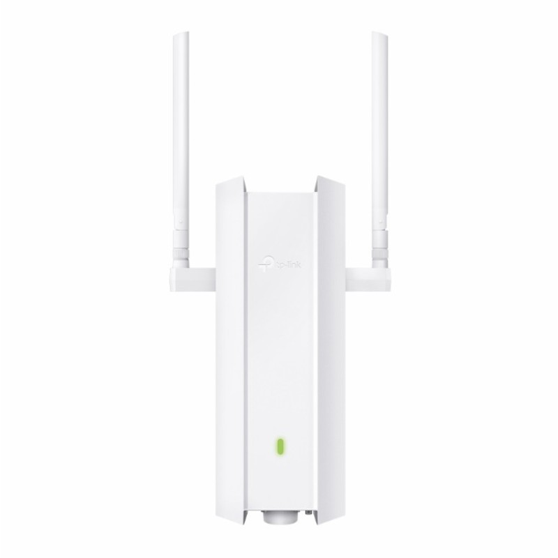 EAP625-Outdoor HD использует двухдиапазонную архитектуру Wi-Fi 6, обеспечивая совокупную скорость до 1800 Мбит/с: до 574 Мбит/с в диапазоне 2.4 ГГц и до 1201 Мбит/с в диапазоне 5 ГГц. Две внешние съемные всенаправленные антенны с коэффициентом усиления 5 dBi (5 ГГц) и 3 dBi (2.4 ГГц) обеспечивают дальность покрытия до 200 метров на 2.4 ГГц и до 300 метров на 5 ГГц. Устройство способно одновременно обслуживать более 1000 клиентских устройств, что делает его идеальным для мест с высокой плотностью пользователей.