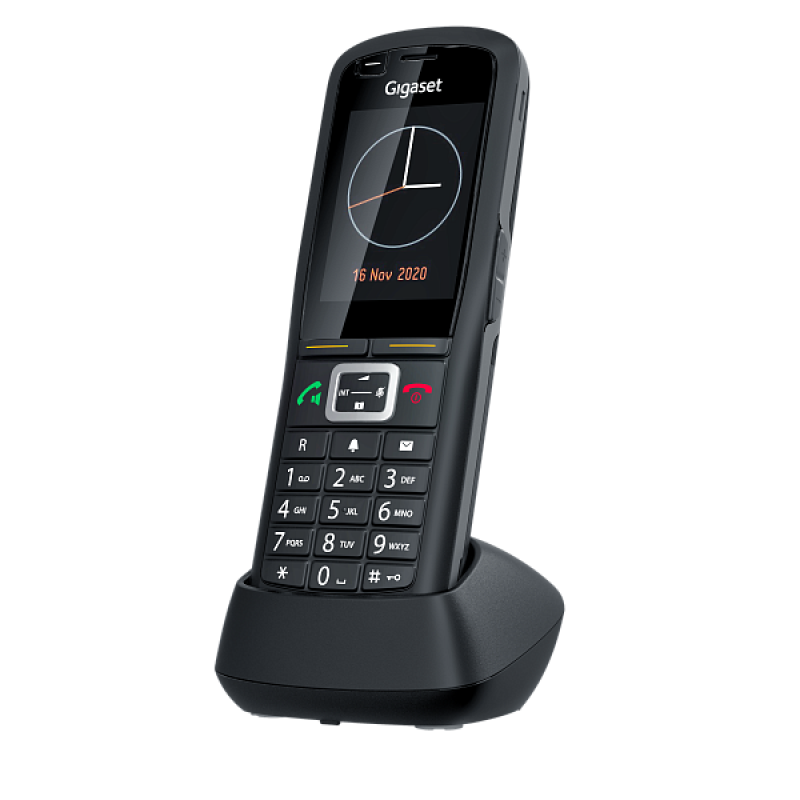 Важно: Для работы трубке требуется совместимая базовая DECT-станция (например, Gigaset N720IP PRO с менеджером N720DM PRO). Трубка продается как отдельное защищенное устройство.