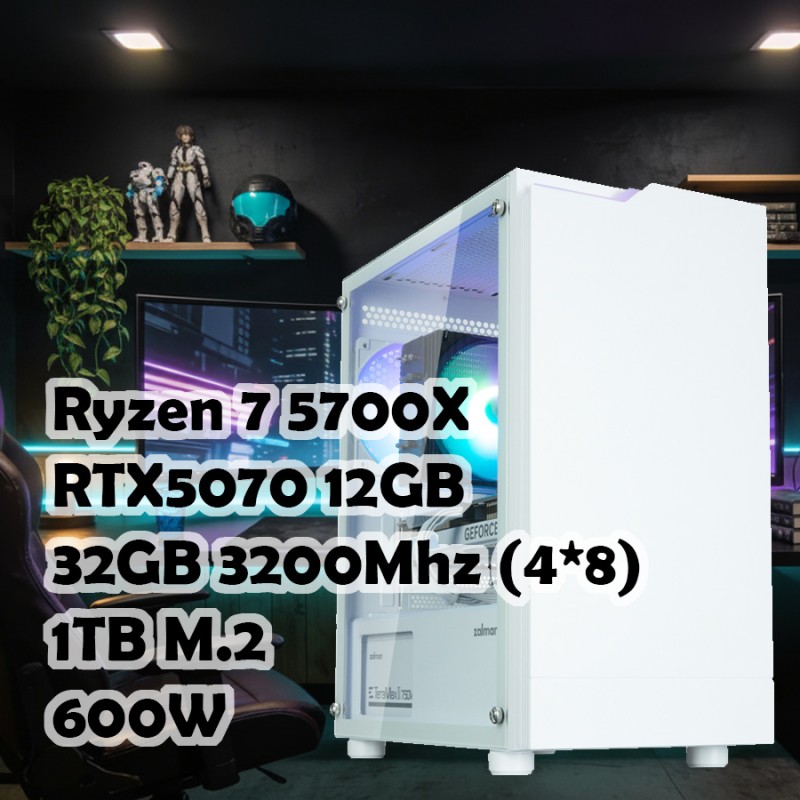 Игровой ПК: AMD Ryzen 7 5700X, PALADIN 400 ARGB, B550M, 16GB 3200Mhz Kit*2, RTX5070 16G, 1TB NVMe, T4 PLUS, 750W